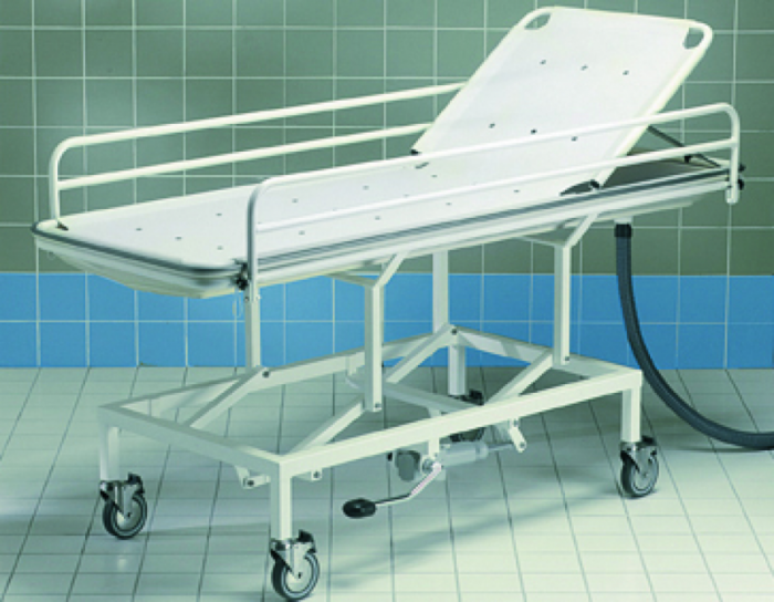 Appelé également chariot-douche, il s’agit d’une table de douche / de soins sur roulettes. Il permet à une personne de se laver en position couchée avec l’aide d’une tierce personne. Pour être utilisé, la douche doit être de plain-pied (à l’italienne). Un tuyau reliera le brancard à l’évacuation de la douche.