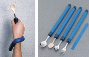 Les couverts flexibles s’enroulent autour de la main/poignet pour compenser une perte de force et maintenir en place le couvert.